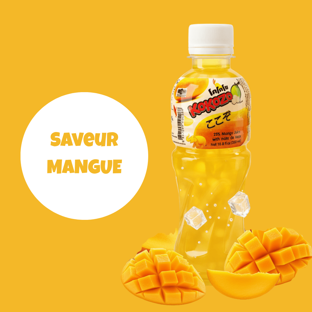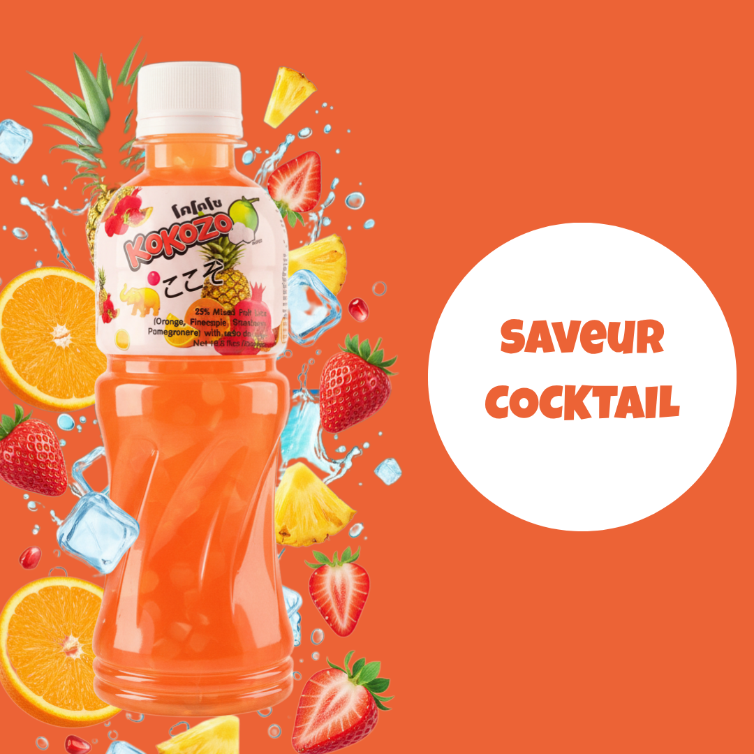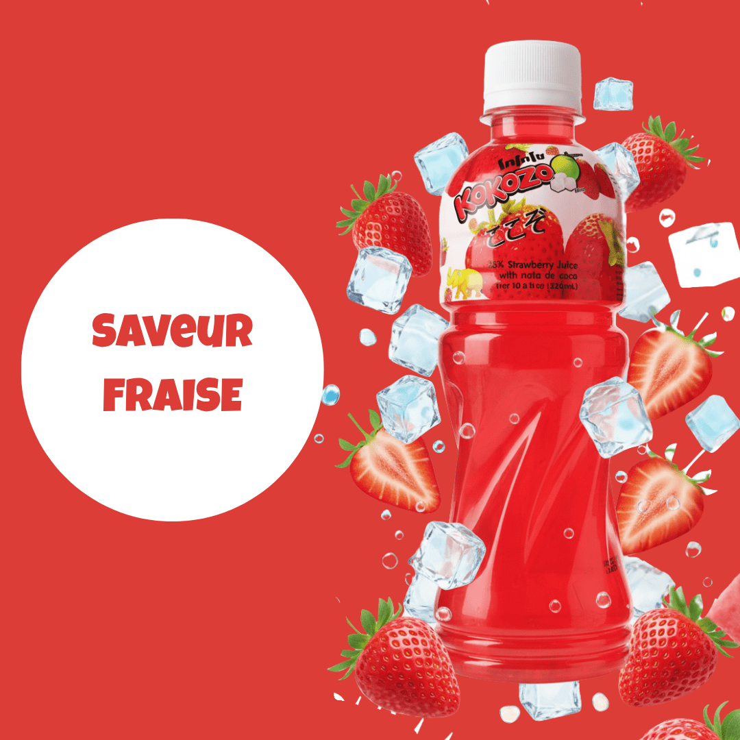 Découvrez nos boissons fruitées avec nata de coco, un mélange unique de jus savoureux et de morceaux de coco à croquer. Frais, fun et délicieux, KOKOZO apporte une nouvelle façon de savourer vos fruits préférés : mangue, ananas, fraise, lychee, melon et bien plus.